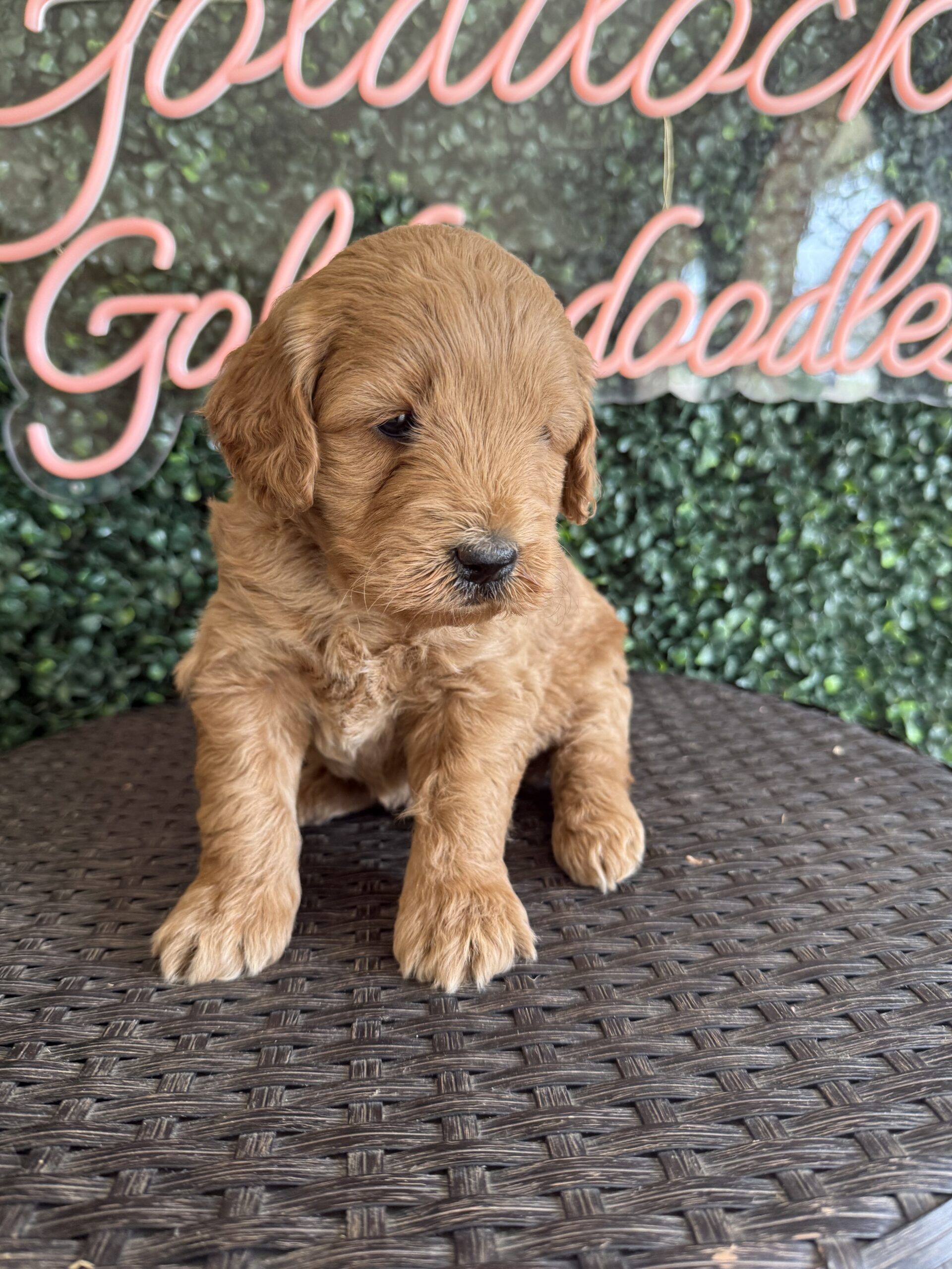 Meet Lefty, a beautiful F1B Micro Goldendoodle puppy for sale in Texas expected to weigh between 15–25 lbs at maturity. He is ready to go home on 3/18 and is being lovingly raised by Goldilocks Goldendoodles, well-socialized, healthy, and prepared to become a wonderful companion.