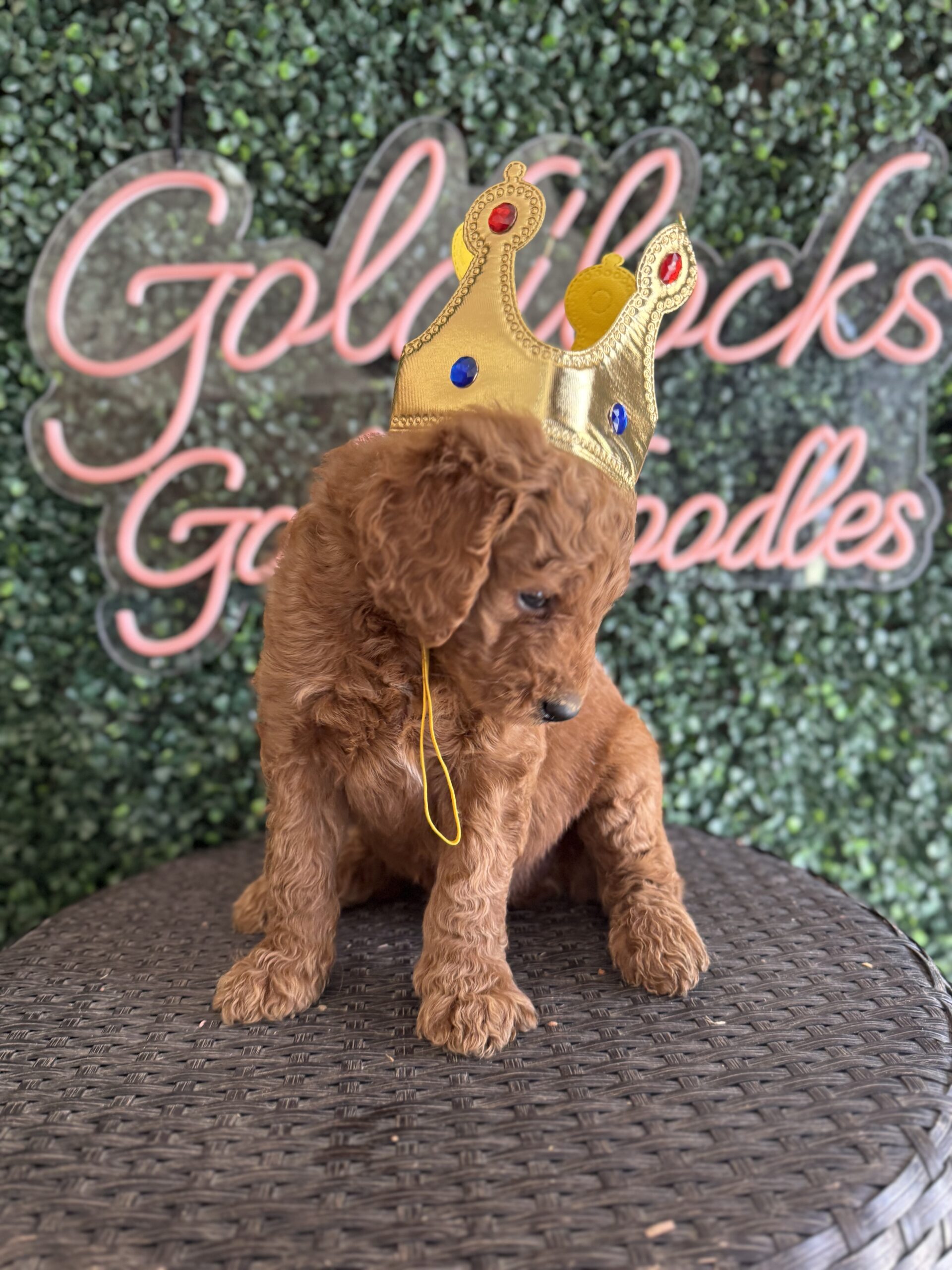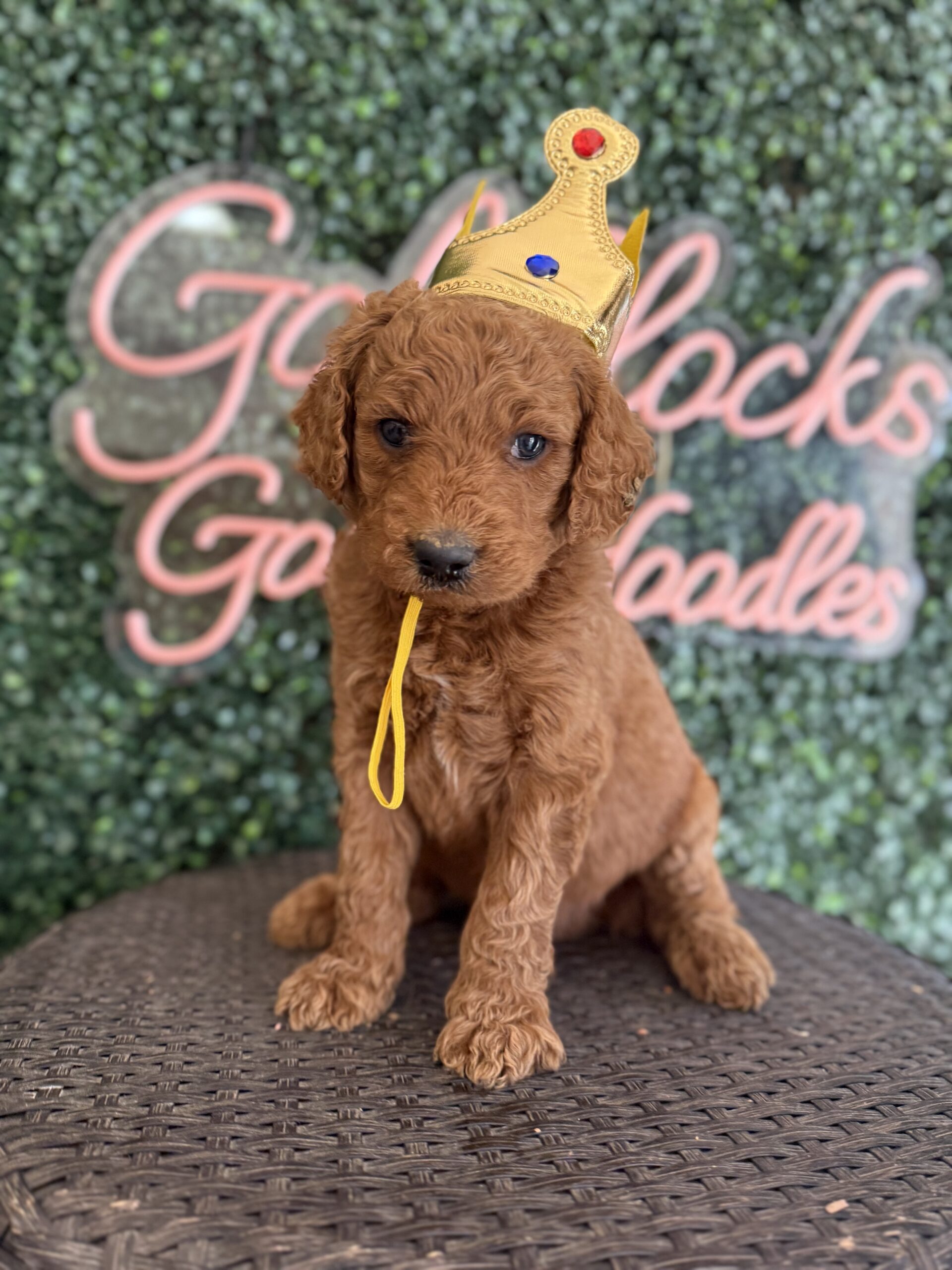 Meet King J, a beautiful F1B Standard Goldendoodle puppy for sale in Texas expected to weigh between 55–65 lbs at maturity. He is being lovingly raised by Goldilocks Goldendoodles and is well-socialized, healthy, and ready to join his forever family.